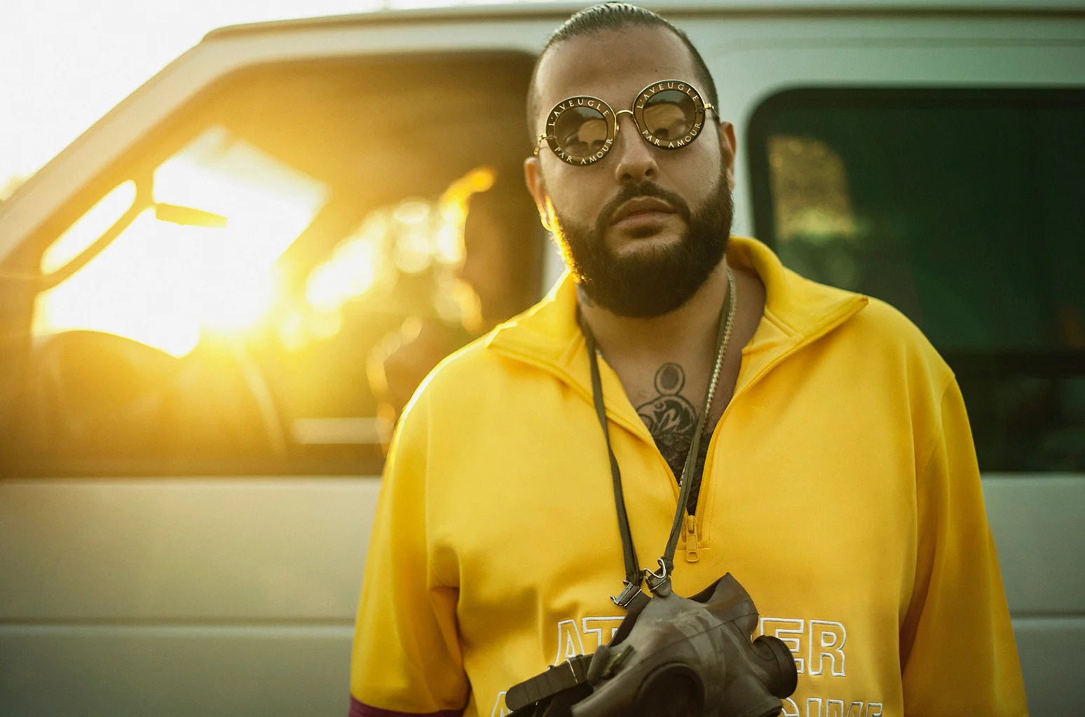 Belly in a gold tracksuit wearing XO chain